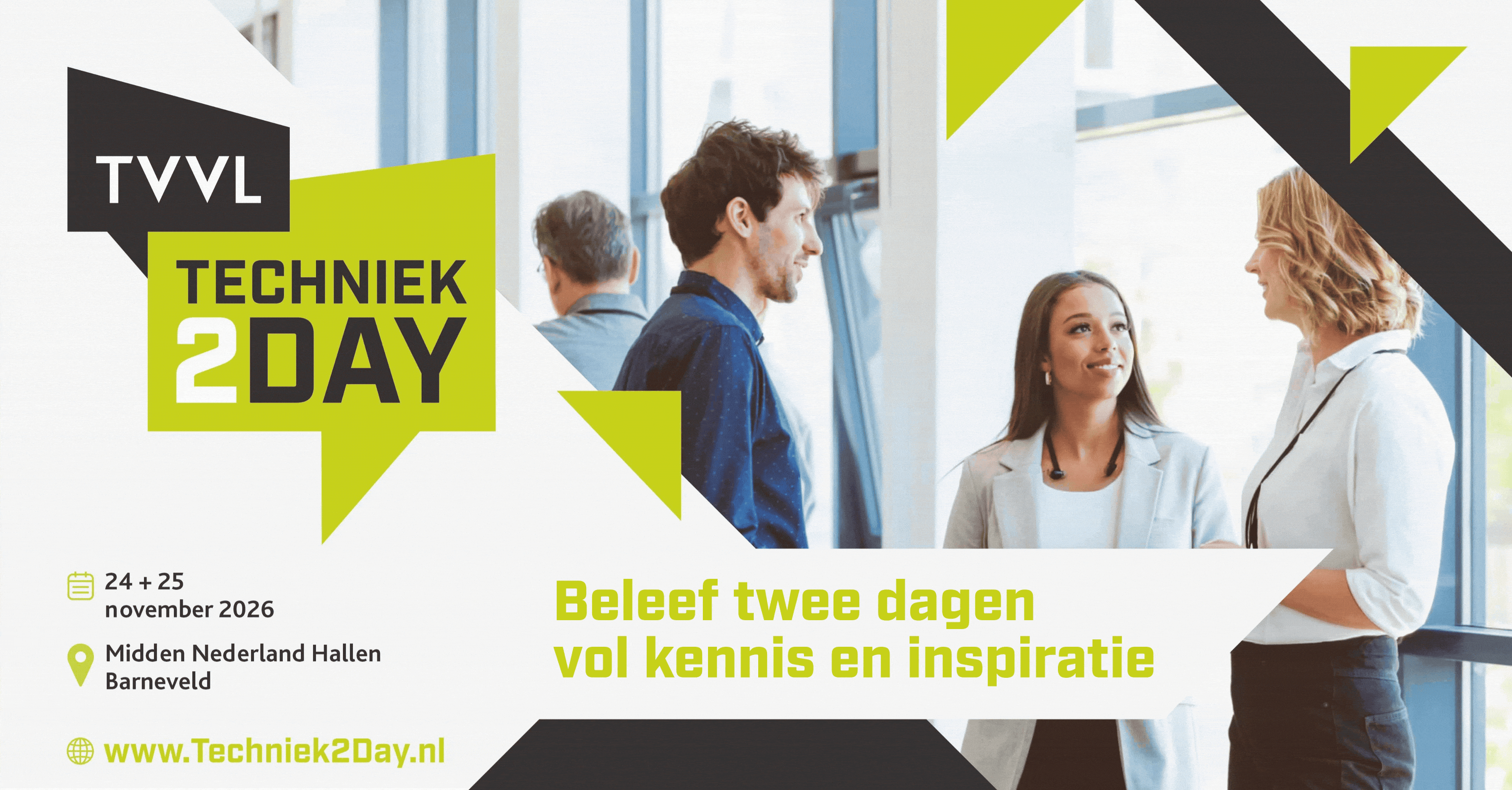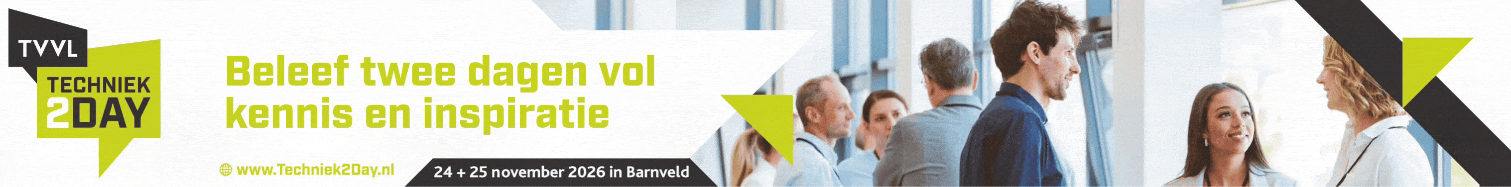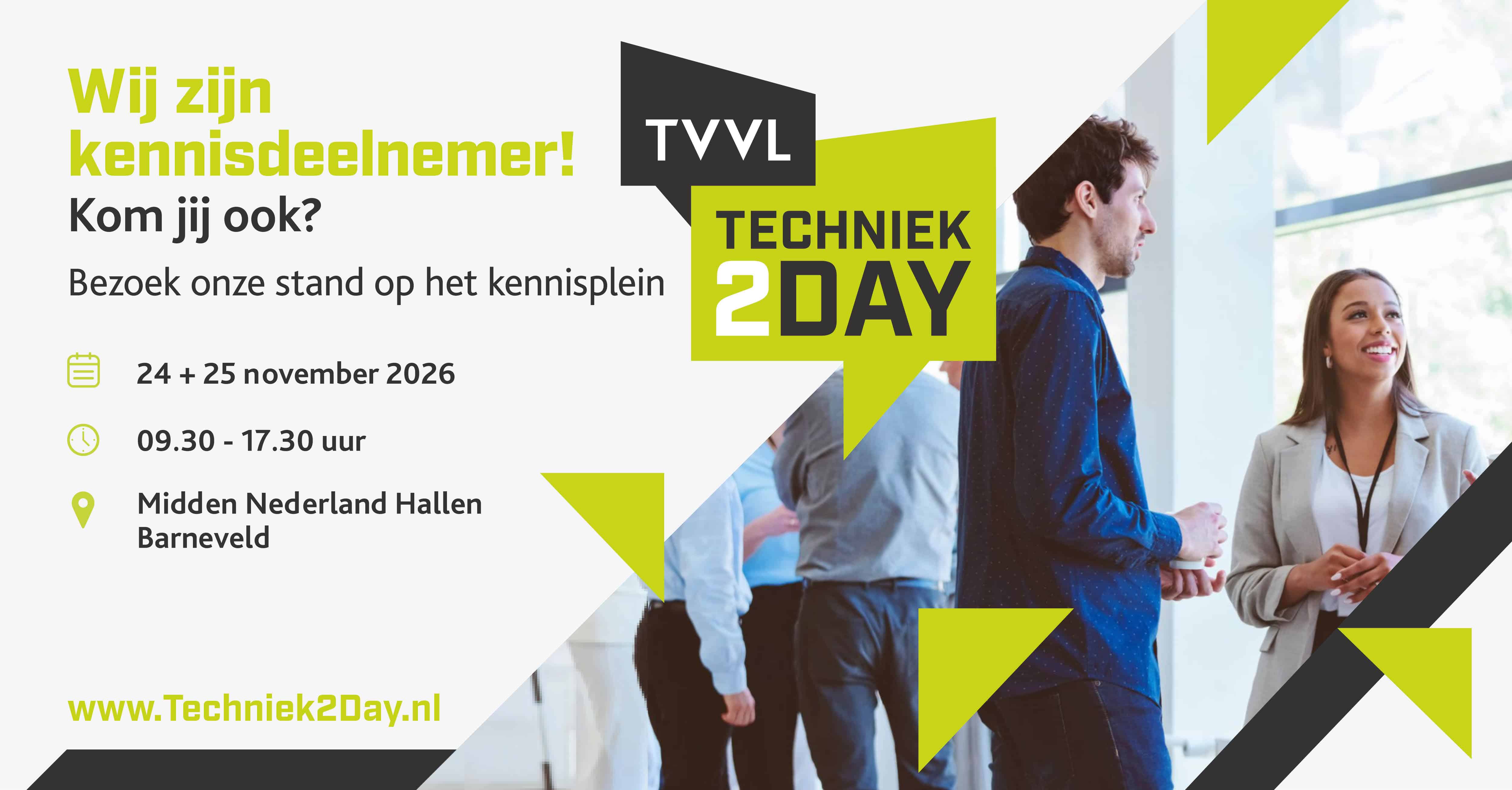 Met deze materialen kun je eenvoudig laten zien dat jouw organisatie aanwezig is op TVVL Techniek2Day. Zo vergroten we samen het bereik van het event.